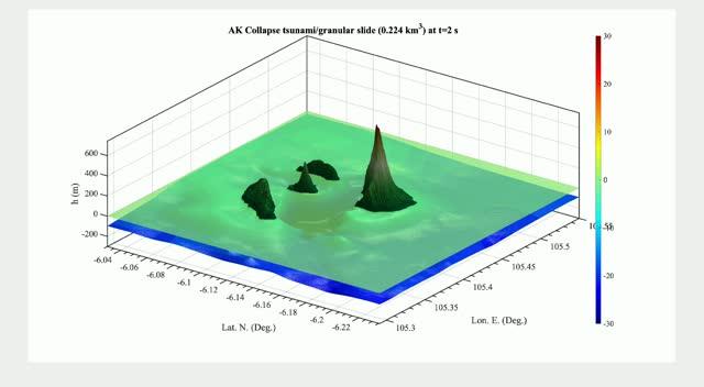 video: 3D rendering of pre- and post-collapse (likeliest scenario) of Anak Krakatau and the surrounding islands based on available pre-event data outside of the Krakatau Islands and field survey data from August 2019.