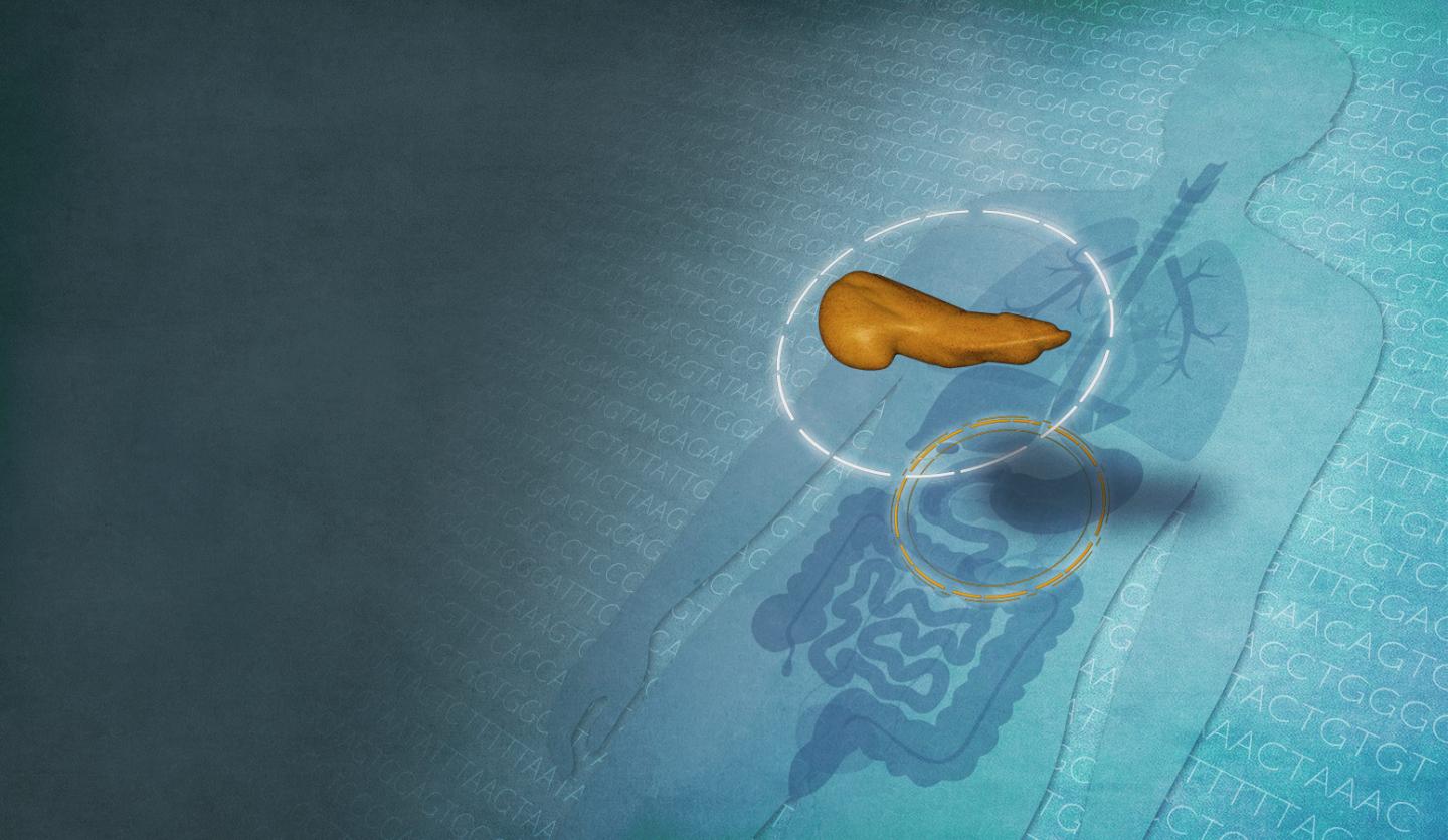 image: A representative image of the pancreas. Beta cells in the pancreas produce insulin, lack of which can cause type 2 diabetes.