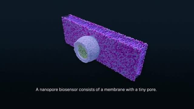 video: To identify molecules, scientists can use a type of biosensor called a nanopore -- a tiny hole in a membrane that allows fluid to flow through it. When a molecule of interest is driven into the pore, it partially blocks the flow of current, providing a signal researchers can use to identify the molecule. But in order to get a good measurement, the molecule must sit inside the pore for long enough. NIST researchers are using laser light to measure the energy of molecules as they transition into and out of nanopores. The resulting information can help scientists design optimized pores for detecting particular molecules.