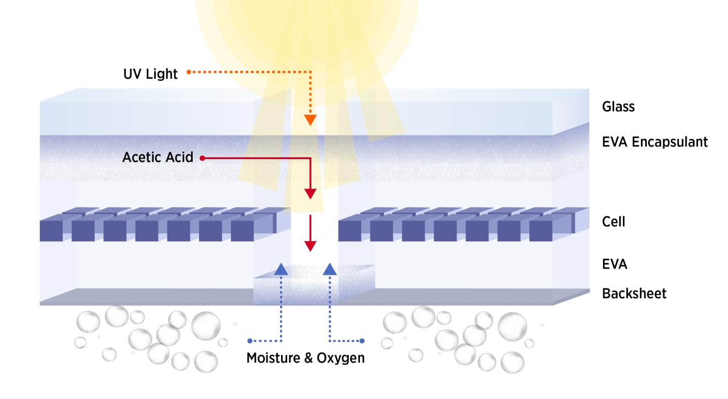 The study highlights the interplay between solar panel components (the EVA encapsulant and polyamide backsheet in this case) as a potentially critical factor to consider when designing solar panels that are built to last.