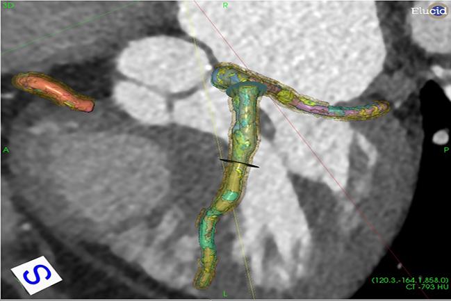 image: Elucid's vascuCAP software gives physicians a color-coded map of cardiac vessels that shows different plaque types and indicates which deserve the most attention.