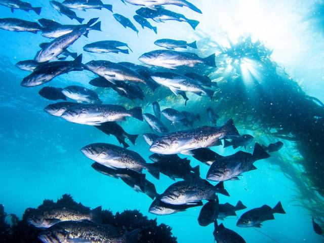 image: A school of blue rockfish at one of the study sites.
