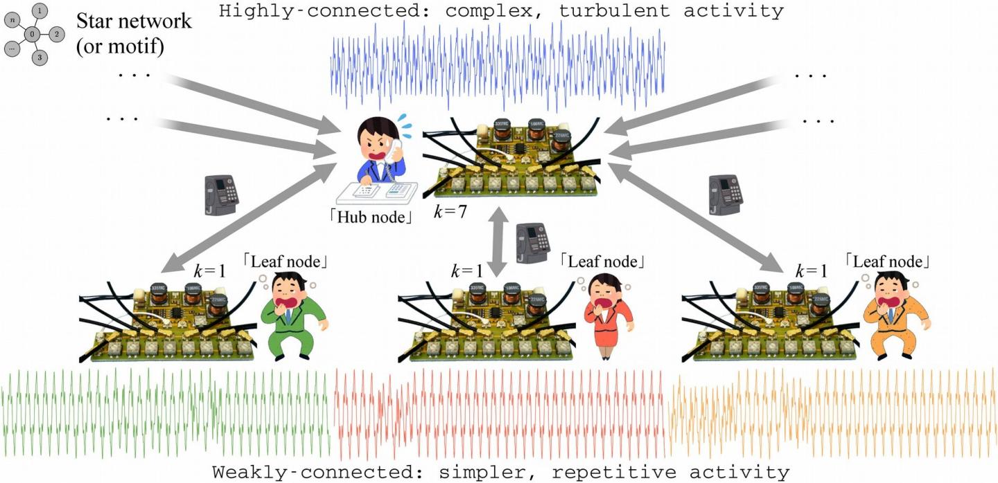 Interestingly, this phenomenon was also seen in a physical network made of electronic oscillators connected to each other using resistors (Fig. 1). "It was quite surprising to notice how strong the tendency for the hub and leaf nodes to behave differently is," explains Assoc. Prof. Hiroyuki Ito, co-author and head of the laboratory where these concepts will be applied to solve sensing problems in the field of Internet of Things (IoT).