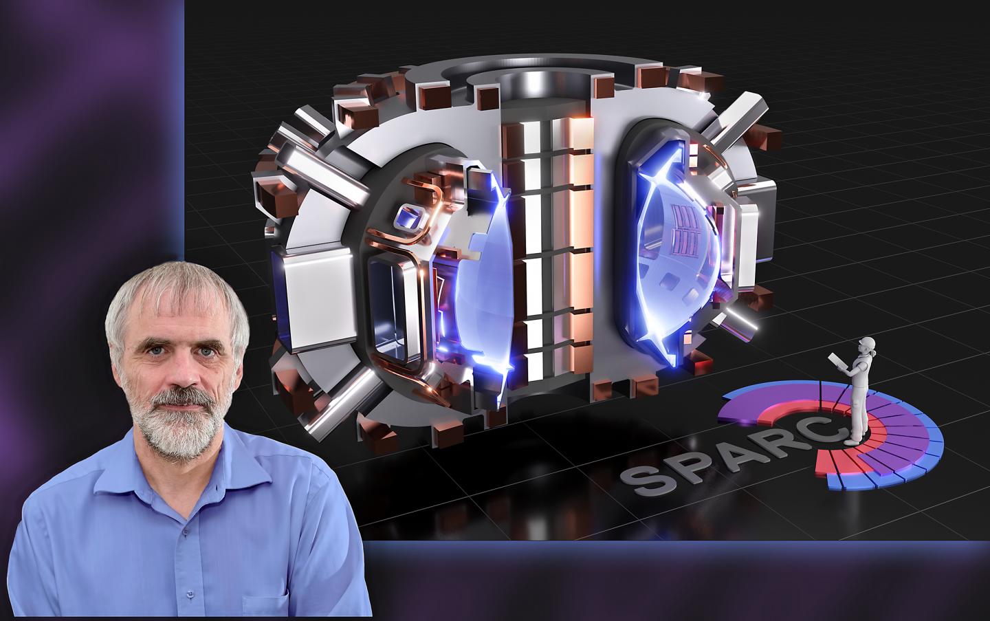 image: PPPL physicist Gerrit Kramer with conceptual image of SPARC fusion reactor.