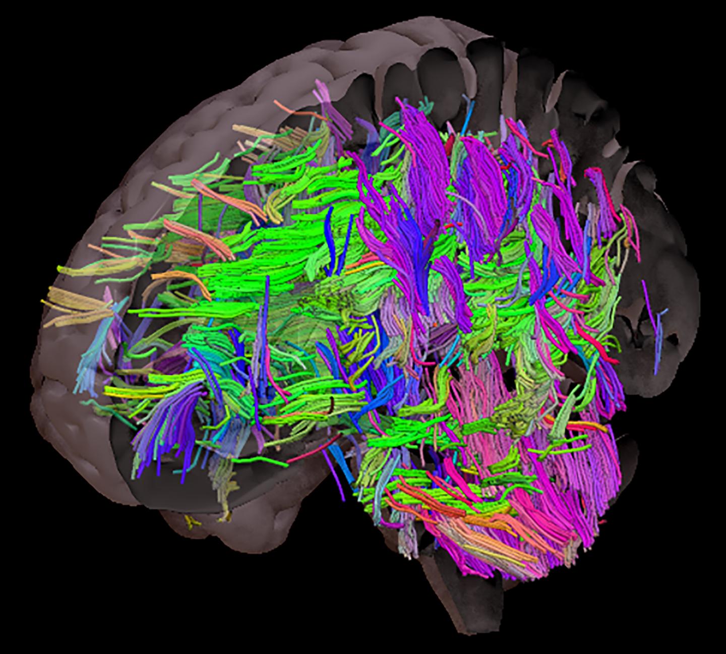 image: The brain with all the white matter tracts visible. White matter tracts are susceptible to damage in people with uncontrolled cardiovascular risks like obesity.