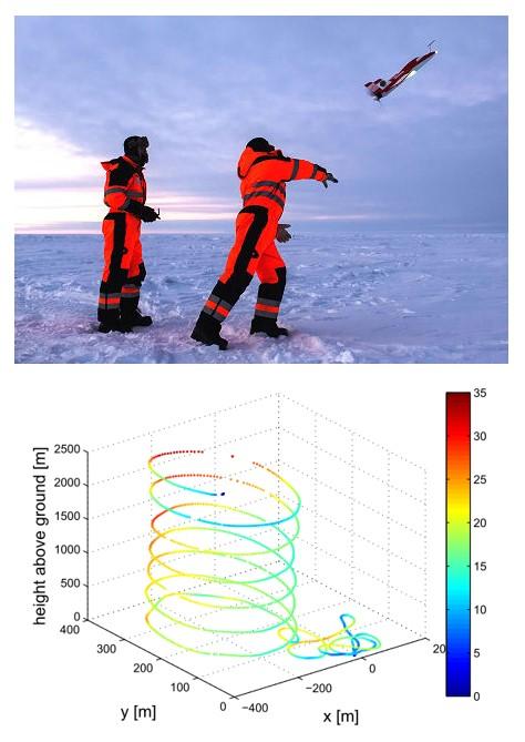 image: Sounding observations using UAVs in the Southern Ocean: (a) launch of a UAV mission; (b) example of a typical flight pattern of the UAV. The colors indicate the ground speed of the aircraft given in m s?1.