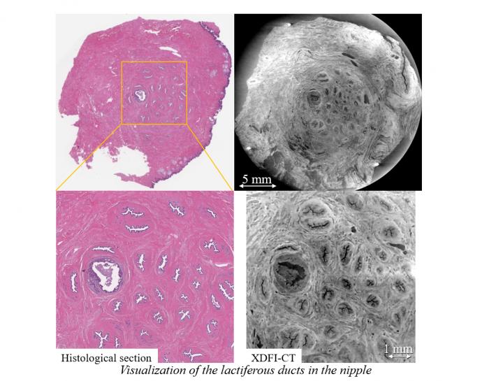 "In this study, which has been published in Breast Cancer Research and Treatment, we examined 51 human nipples by XDFI-CT and visualized the 3D arrangements of the nipple ducts," explains Assoc. Prof. Sunaguchi. First, XDFI-CT was used to obtain 2D sections of the nipple so as to compare them with conventional tissue sections observed through light microscopy. The results showed that the 2D CT slices were structurally compatible with the ones obtained through the conventional approach, giving a first demonstration of the capabilities of the method.
