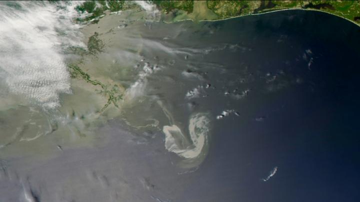 image: Satellite image taken on May 9, 2010 of the Deepwater Horizon oil spill site in the Gulf of Mexico.