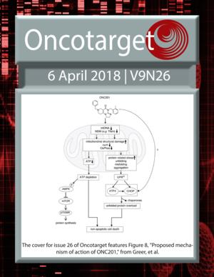 The researchers in Dr. Lipkowitz's group at the Center for Cancer Research in the National Cancer Institute observed that ONC201 kills breast cancer cells via a TRAIL-independent mechanism. Time-lapse live cell imaging revealed that ONC201 induces cell membrane ballooning followed by rupture, distinct from the morphology of cells undergoing apoptosis. They found that ONC201 inhibits mitochondrial respiration and induces mitochondrial structural damage. Moreover, they found ONC201 reduces mitochondrial DNA copy number. Importantly, cells dependent on glycolysis, such as fumarate hydratase deficient cancer cells and multiple cancer cell lines with reduced amounts of mitochondrial DNA were resistant to ONC201. ONC201 induced ATF4 and CHOP in breast cancer cells, and the stress response it was partially dependent on the mitochondrial effects of ONC201.