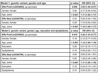image: Analysis of multiple logistic regression for dementia using different models incluing ERα genotypes