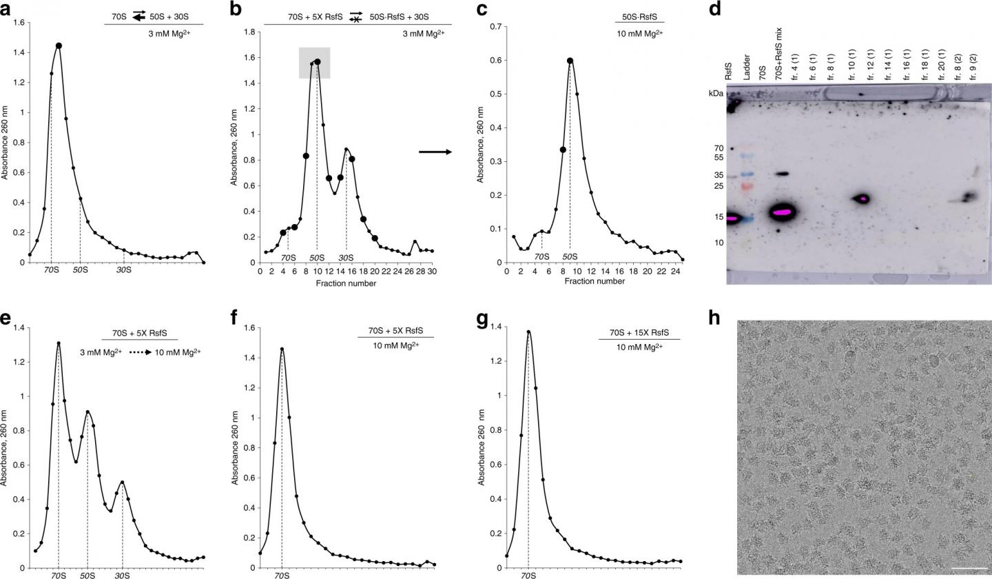 image: RsfS protein binds to the 50S particles and prevents ribosomal subunits association.