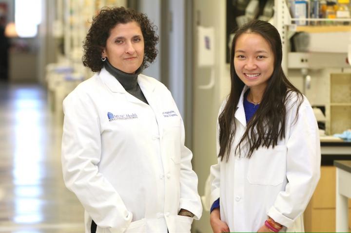image: Scleroderma researchers Dr. Carol Feghali-Bostwick, the SmartState and Kitty Trask Holt Endowed Chair for Scleroderma, and graduate student and TL1 trainee Xinh Xinh Nguyen