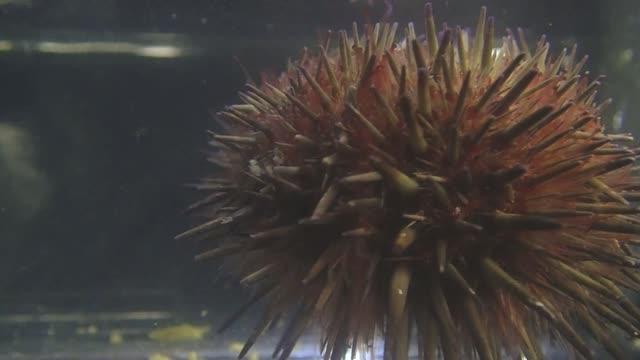 video: Normally, a sea urchin (Echinometra lucunter) can right itself as it does in this video, but when it doesn't have enough oxygen or is too hot, flipping over becomes more difficult.