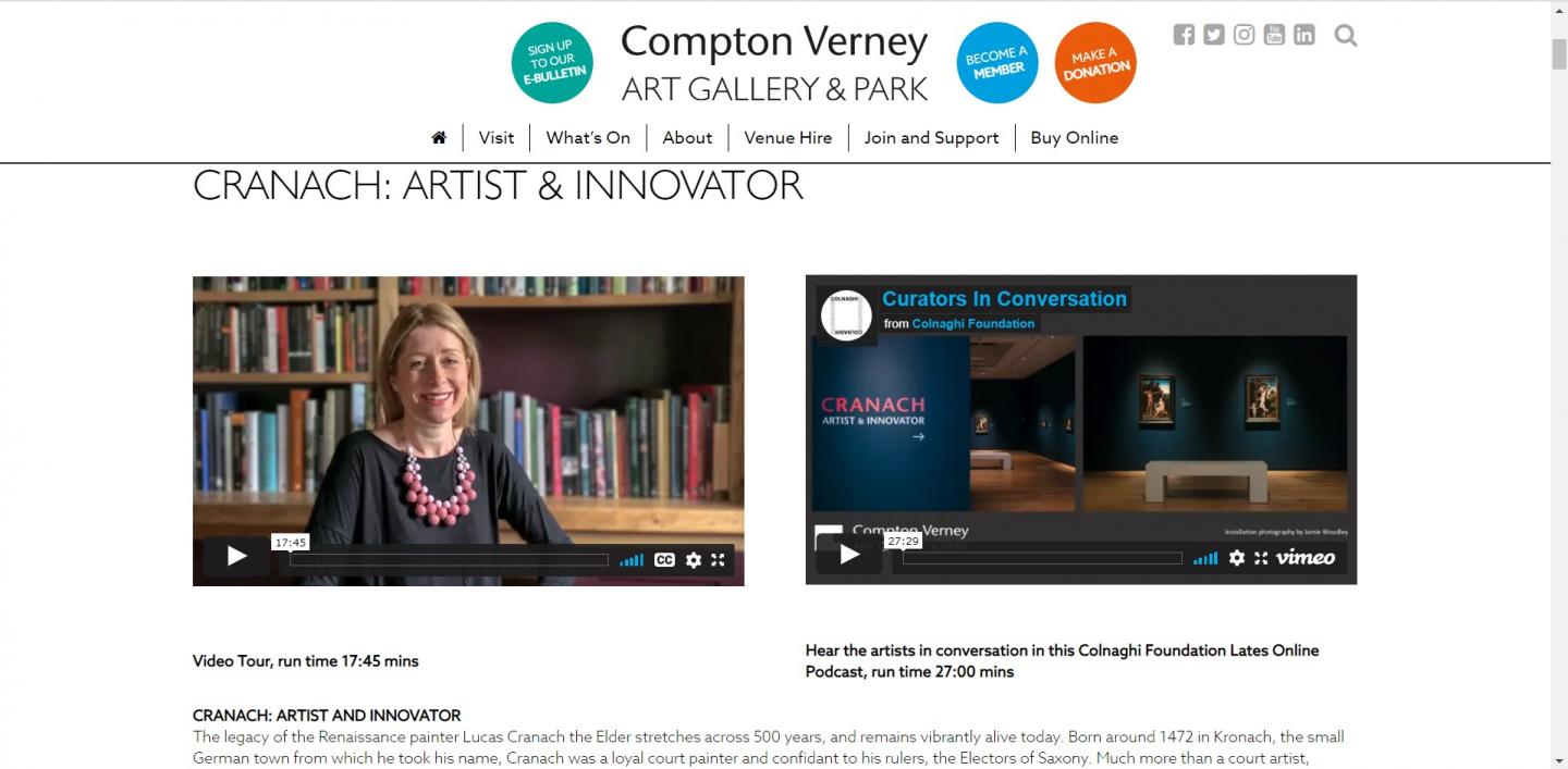 When Museums closed their doors in March 2020 for the first COVID-19 lockdown in the UK a majority moved their activities online to keep their audiences interested. Researchers from WMG, University of Warwick have worked with OUMNH, to analyse the success of the exhibitions, and say the way Museums operate will change forever.Caption: Compton Verney's homepage for the Cranach exhibition which opened in March 2020 Credit: Compton Verney