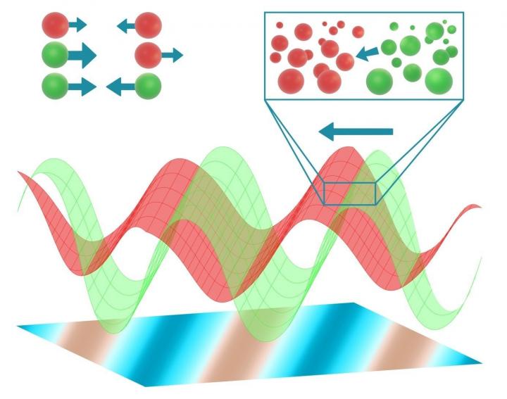 Saha and her colleagues used computer simulations to study the effects of the introduced modifications. "Surprisingly, even minimal non-reciprocity leads to radical deviations from the behaviour of passive systems", says Saha. For example, the researcher observed the formation of travelling waves in a mixture of two different types of particles. In this phenomenon, bands of one component chase the bands of the other component, thereby resulting in a pattern of moving stripes. In addition, complex lattices can form in particle mixtures in which small clusters of one component chase groups of the other component. With their work, the researchers hope to contribute to scientific progress in both physics and biology. For example, the new model can describe and predict the behaviour of different cells, bacteria, or enzymes. "We have taught an old dog new tricks with this model", says Golestanian. "Our research shows that physics contributes to our understanding of biology and that the challenges posed by studying living matter open up new avenues for fundamental research in physics."