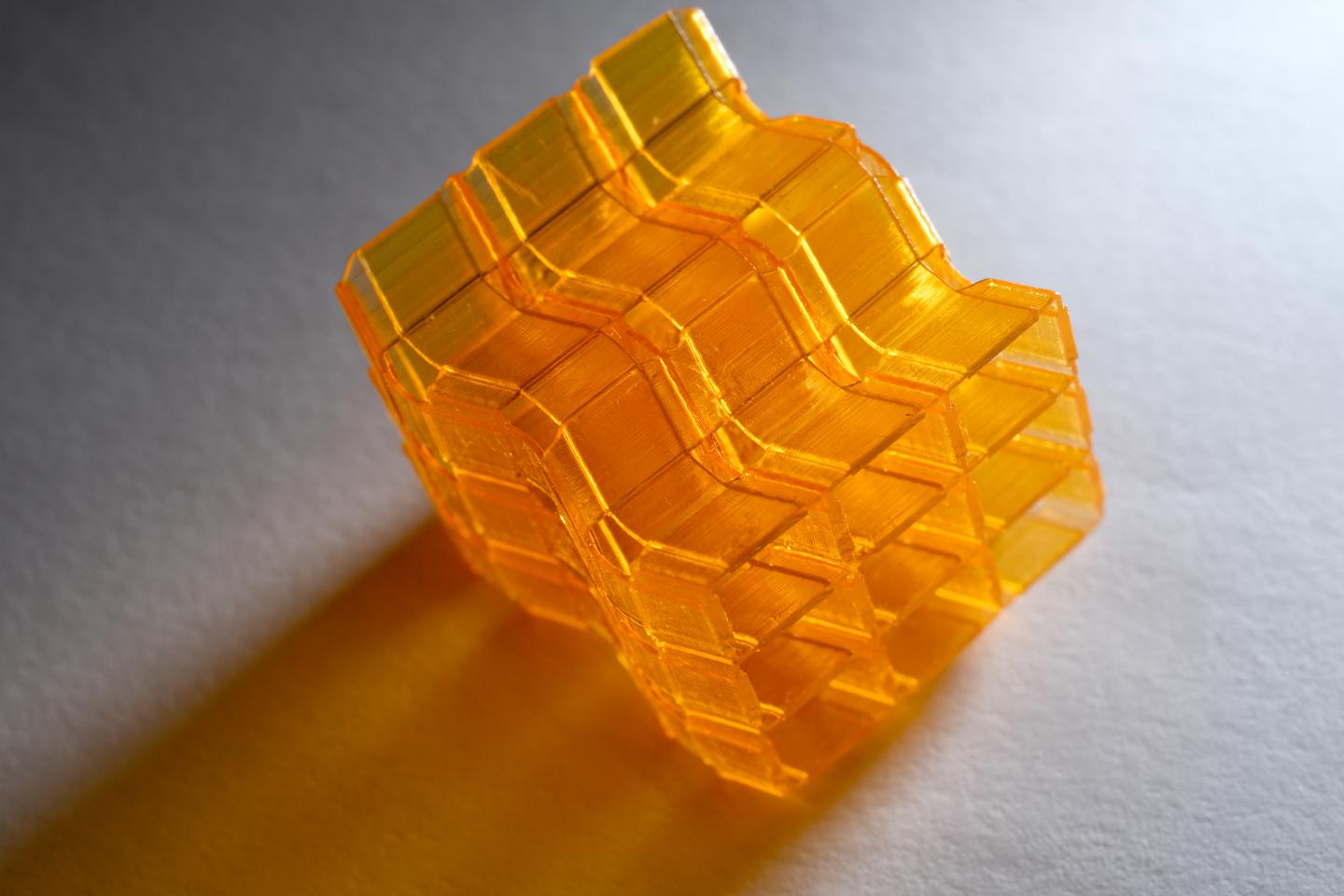 image: This is a closeup of an origami structure created through Digital Light Processing 3D printing.