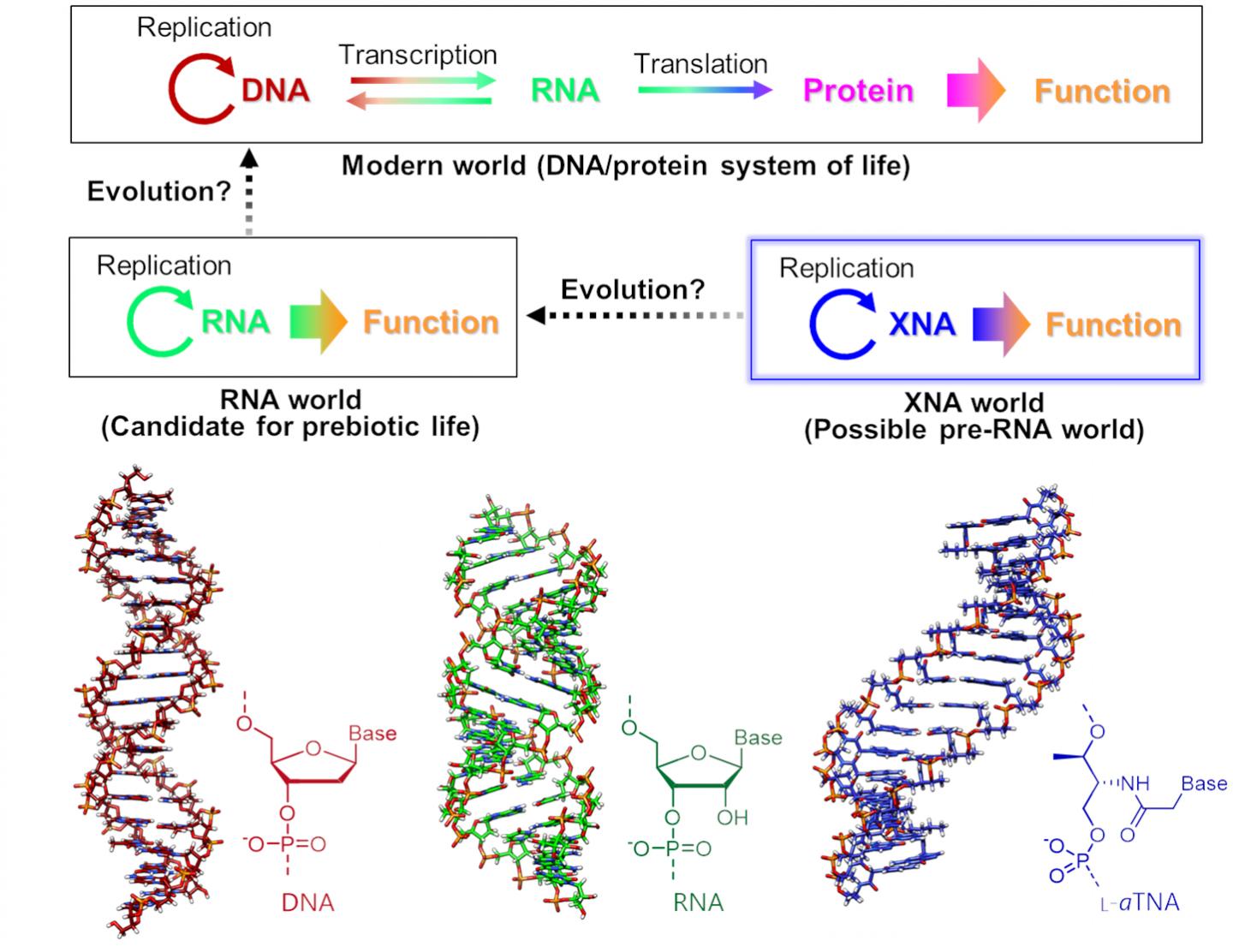 "The RNA world is widely thought to be a stage in the origin of life," says Nagoya University biomolecular engineer Keiji Murayama. "Before this stage, the pre-RNA world may have been based on molecules called xeno nucleic acids (XNAs). Unlike RNA, however, XNA replication probably didn't require enzymes. We were able to synthesize an XNA without enzymes, strongly supporting the hypothesis that an XNA world might have existed before the RNA world."