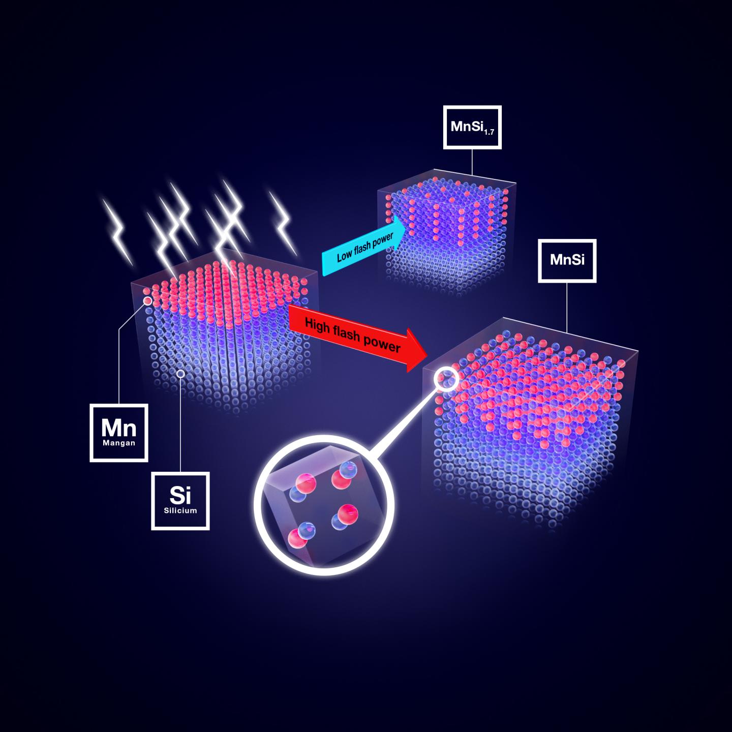 So the experts used this pancake strategy of rapid, intense heating as their model. "When we heat a thin manganese film placed on top of a silicon wafer very briefly, we introduce very little energy into the material," Zhou explains their rationale. "This means it will cool down fast - so fast, in fact, that the unwanted MnSi1.7 won't have time to form." The challenge is how to heat something rapidly and vigorously at the same time. The research group found the solution in bright, intense flashes of white light.