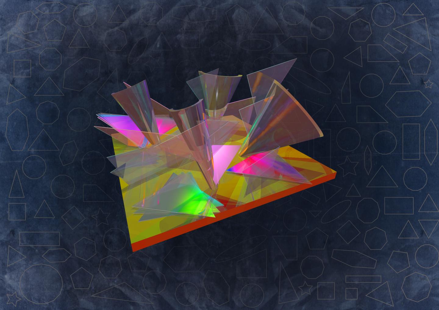 image: 2D sheets intersect and twist on top of each other, modifying the energy landscape of the materials