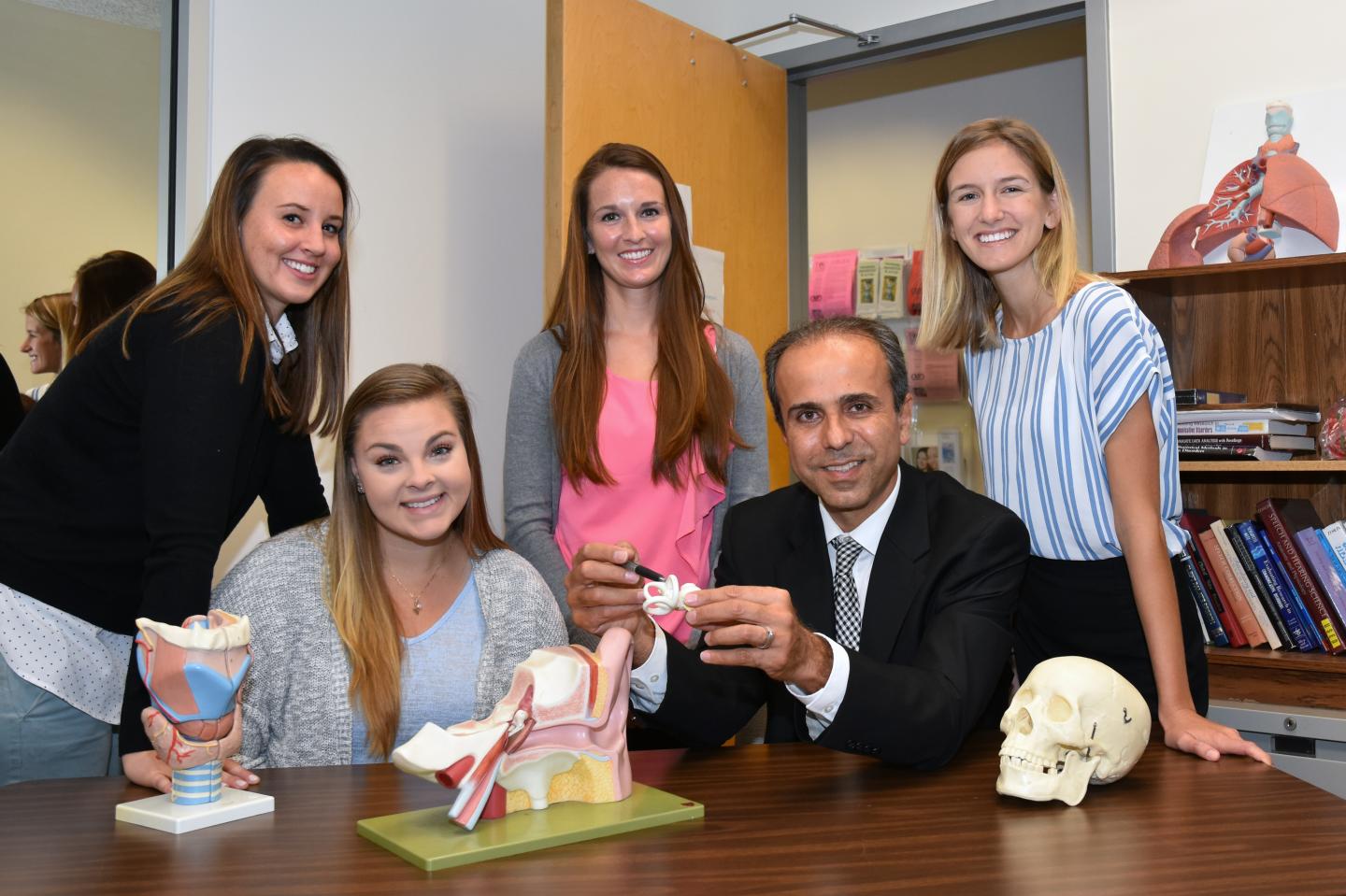 image: Ali Danesh, Ph.D., (seated on the right) co-author, a professor of communication science and disorders in FAU's College of Education, a professor of clinical biomedical sciences in FAU's Schmidt College of Medicine, and a member of FAU's Brain Institute (I-BRAIN) and members of his anatomy laboratory.