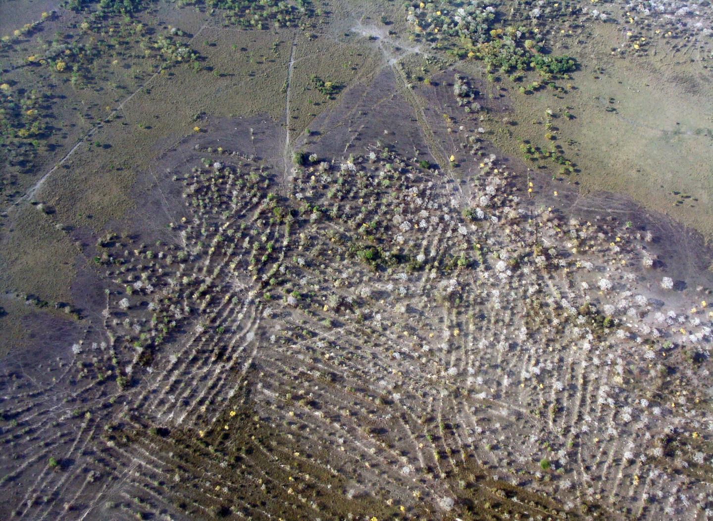 image: This is an aerial photograph of Pre-Colombian raised field from Llanos de Moxos, Bolivia.