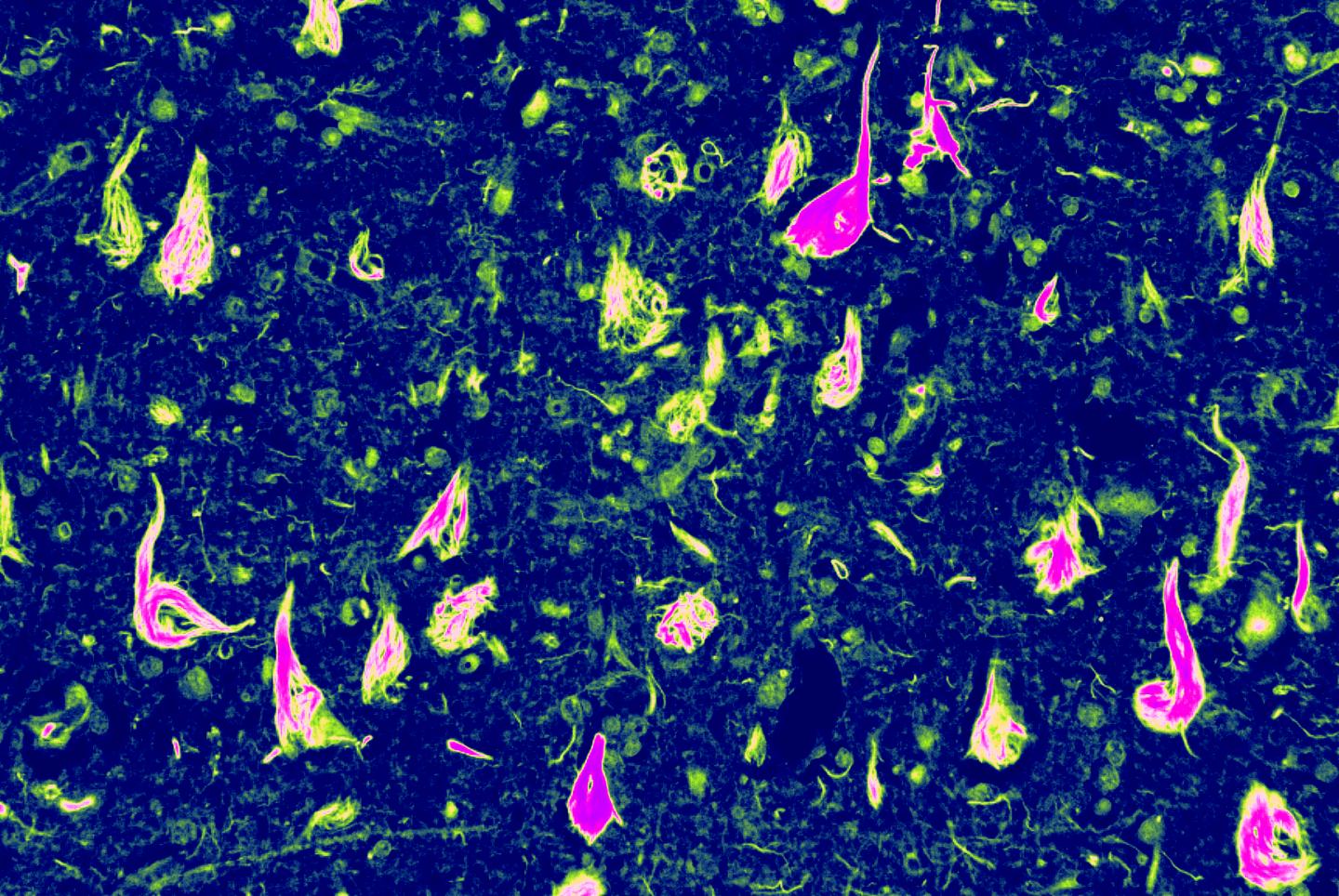 image: Abnormal neurofibrillary tangles (NFTs) -- a buildup of tau protein in parts of the brain -- helped Edward Lee, MD, PhD, an assistant professor of Pathology and Laboratory Medicine, and other Penn Medicine scientists uncover this new form of dementia.