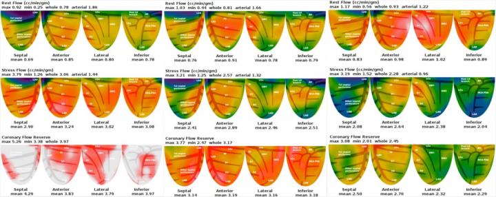 The mean rest myocardial blood flow was similar among patients in the three groups of mild, moderate and severe OSA. The mean hyperemic myocardial blood flow was also similar, though researchers found that the blood flow decreased gradually as the severity of OSA increased. There were, however, significant differences in the mean coronary flow reserve among the three groups--those with severe OSA had a substantially lower coronary flow reserve.