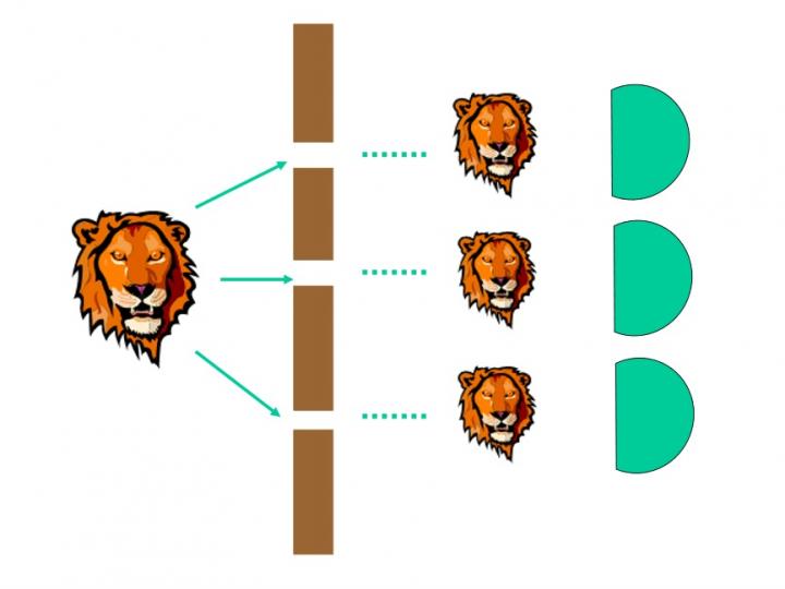 What will happen if we just place only a single detector after the upper slit? It is natural to think that it will have one third probability to detect the photon, and collapses the whole wavefunction into slit-1, as shown in Fig. 2. However, what will happen if the detector at upper slit does not measure the photon? This is a partial measurement. This was encountered in the duality quantum computing formalism, where linear combination of unitaries (LCU) was proposed to perform quantum computing [2].