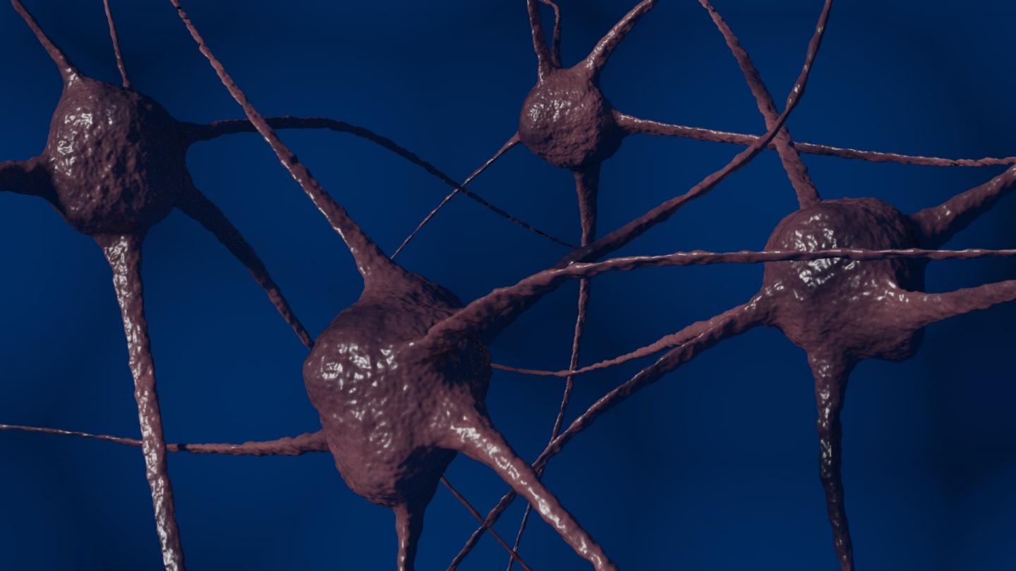 image: This is an artists rendering of a network of nerve cells. The axons are the filamentous structures connecting the cell bodies.
