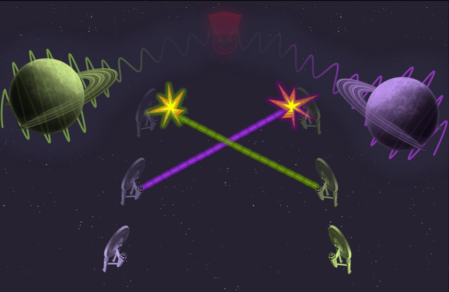 "In Einstein's theory, a powerful enemy could use the principles of general relativity by placing a massive object - like a planet - closer to one ship to slow the passing of time."