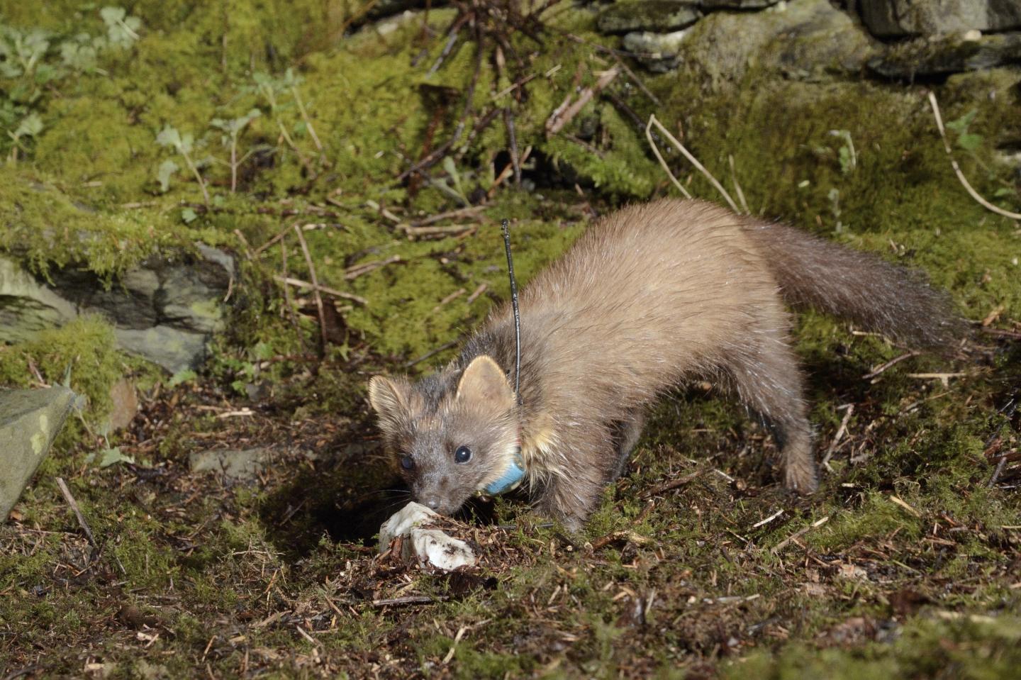 image: A female pine marten with a radio collar