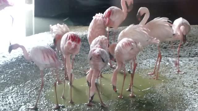 "It's not always possible to feed these birds outdoors, as lesser flamingos only weigh about 2kg and are native to Africa, so captive birds in places like the UK would get too cold if they went outside in the winter.