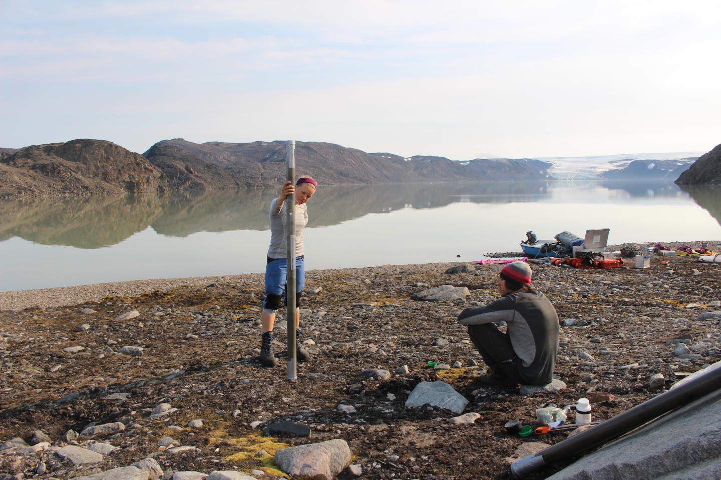 image: Sofia Kjellman from UiT -- The Arctic University of Norway collecting sediment cores in Svalbard as part of her Ph.D. research. She sometimes works in remote locations that can only be reached by helicopter. Now she's part of a growing group of researchers trying to find ways to cut the amount of plane flights she takes.