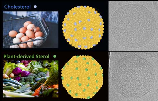 image: Gene-infused nanoparticles used for combating disease work better when they include plant-based relatives of cholesterol because their shape and structure help the genes get where they need to be inside cells.