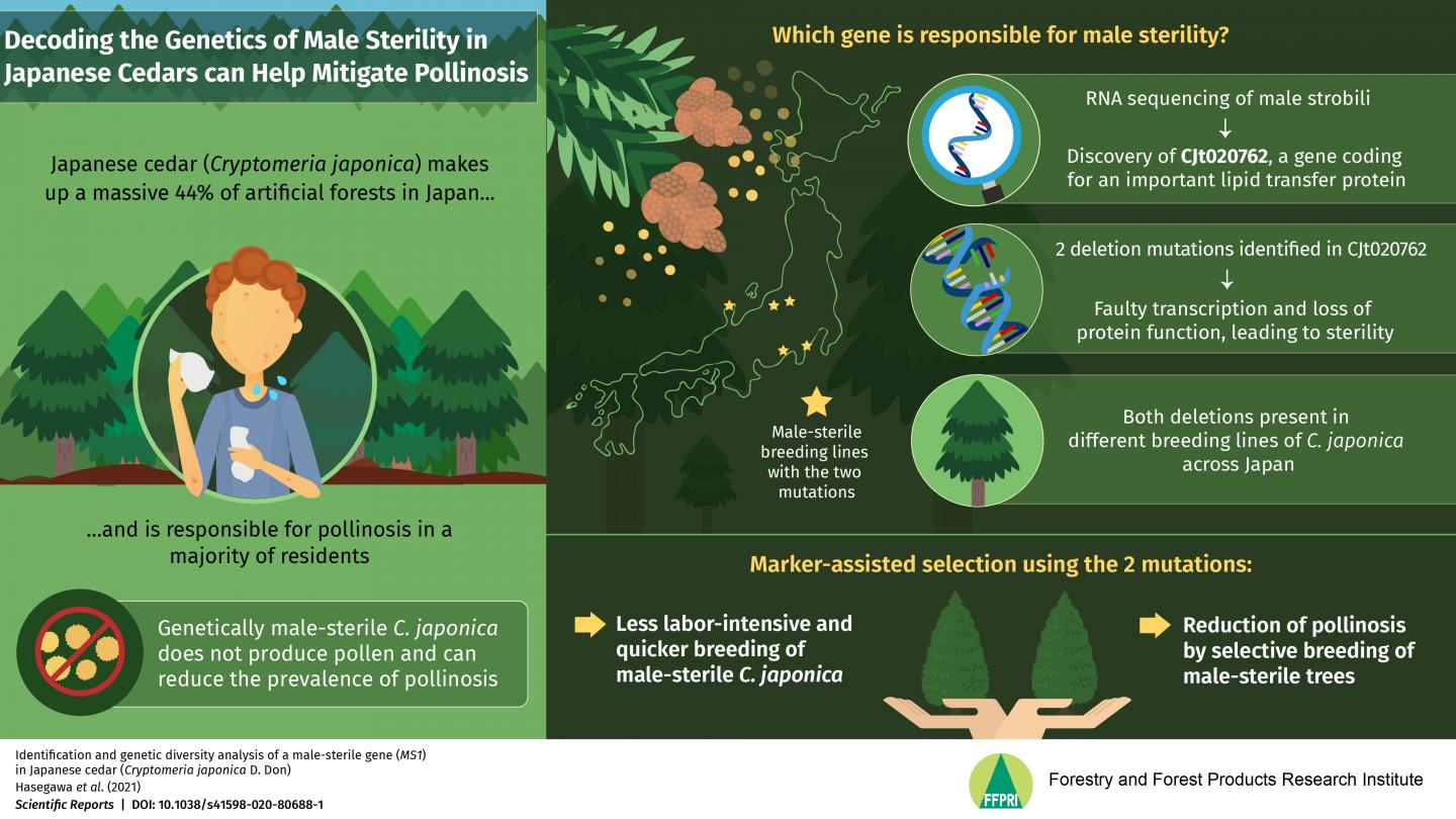 image: Decoding the genetics of male sterility in Japanese cedars can help mitigate pollinosis.