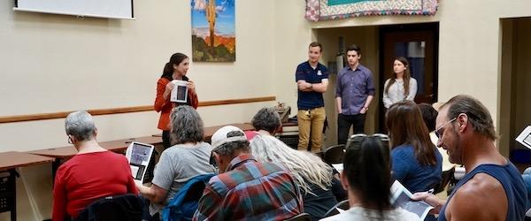 image: Courtney Crosson and UA architecture students facilitate a mapping activity to identify current flooding challenges at a neighborhood meeting.