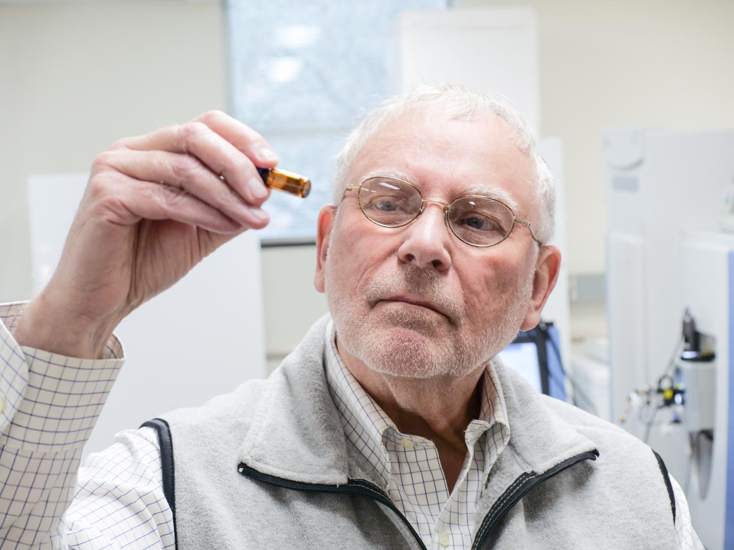 image: Professor John Giesy inspects a sample in his lab at the USask Toxicology Centre.