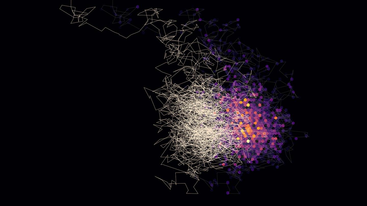 image: A visualization of the Markov chain Monte Carlo algorithm, used for Bayesian analysis, exploring parameter space.