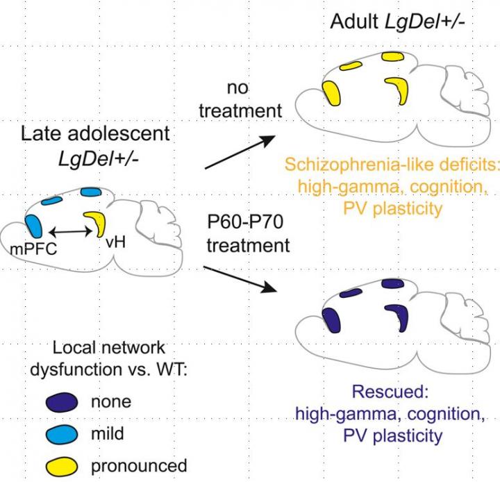 "Our findings in a genetic mouse model support the hypothesis that a critical developmental time window influences the emergence of schizophrenia at the transition between late adolescence and adulthood - and that it is possible to prevent the progression of schizophrenia by treatment during that time window," says Pico Caroni. "It might be possible to build on our study to develop therapeutic strategies to prevent the outbreak of schizophrenia in at risk individuals."