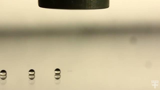 To enhance drop formation, the research team relies on generating sound waves. These pressure waves have been typically used to defy gravity, as in the case of acoustic levitation. Now, the researchers are using them to assist gravity, dubbing this new technique acoustophoretic printing.