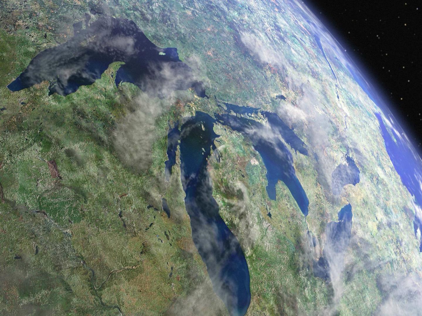 image: The United States Great Lakes as seen from space. The Great Lakes hold about 90% of the freshwater in the U.S. and about 20% of the world's freshwater supply (NOAA).