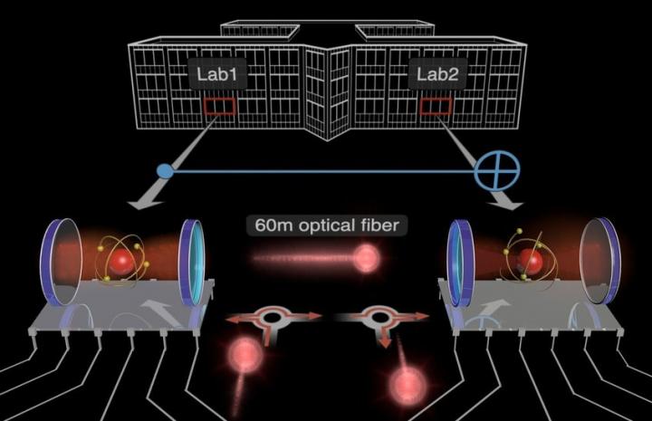 One way to overcome the technical difficulties in the construction of quantum computers is presented in a new study in the journal Science by Severin Daiss, Stefan Langenfeld and colleagues from the research group of Gerhard Rempe at the Max Planck Institute of Quantum Optics in Garching. In this work supported by the Institute of Photonic Sciences (Castelldefels, Spain), the team succeeded in connecting two qubit modules across a 60-meter distance in such a way that they effectively form a basic quantum computer with two qubits. "Across this distance, we perform a quantum computing operation between two independent qubit setups in different laboratories," Daiss emphasizes. This enables the possibility to merge smaller quantum computers to a joint processing unit.