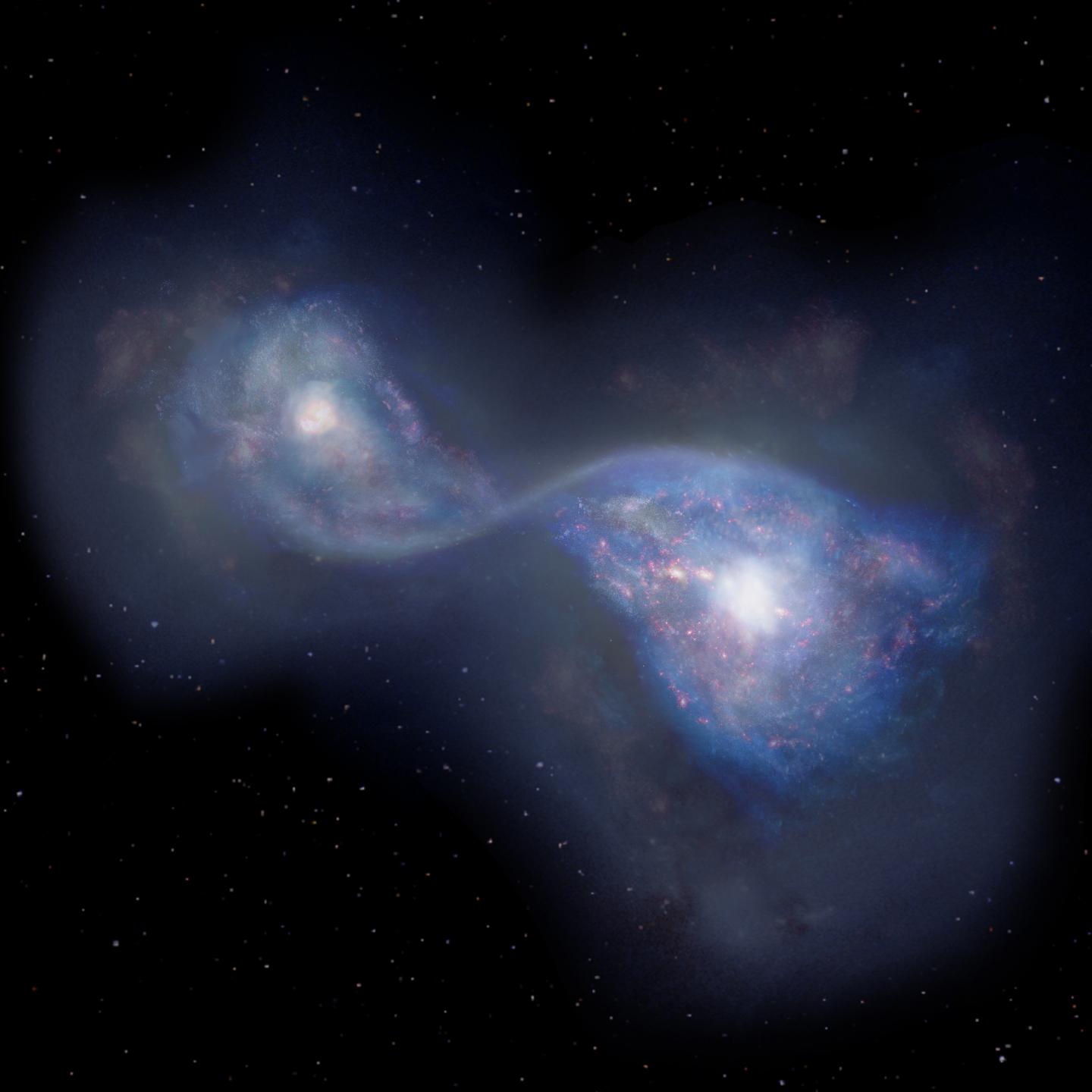 image: Artist's impression of the merging galaxies B14-65666 located 13 billion light years-away.