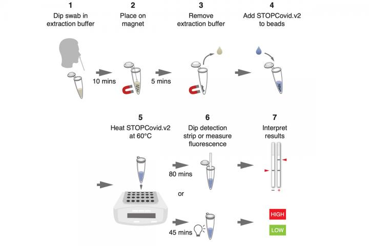 "We developed STOPCovid so that everything could be done in a single step," Joung says. "A single step means the test can be potentially performed by nonexperts outside of laboratory settings."