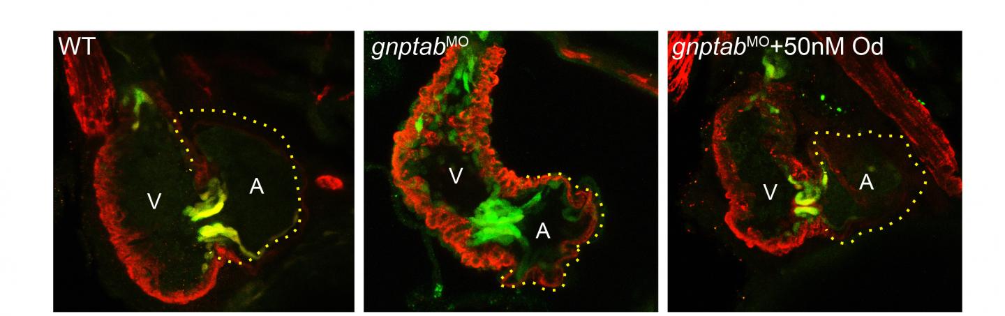 The small molecules included the cathepsin protease K inhibitor, odanacatib, and an inhibitor of TGFß growth factor signaling. Cathepsin proteases have been associated with later-onset heart disease including atherosclerosis, cardiac hypertrophy, and valvular stenosis, but their role in congenital heart defects has been unclear. The current study offers new insight into how mislocalizing proteases like cathepsin K alter embryonic heart development in a zebrafish model of ML II.
