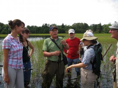After 50 years of studying rare plants, the Academy of Natural Sciences' Dr. Alfred Schuyler (center), leading a field trip, finally has a new organism named for him. Vezdaea schuyleriana is a rare lichen found on only one boulder in Pennsylvania.