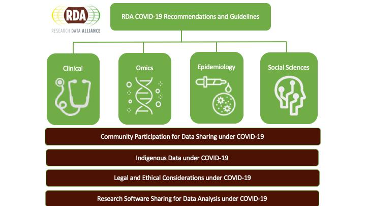 On 30 June 2020, RDA published the final version of the RDA COVID-19 Recommendations and Guidelines on data sharing covering four research areas - clinical data, omics practices, epidemiology and social sciences - complimented by overarching areas focusing on legal and ethical considerations, research software, community participation and indigenous data.