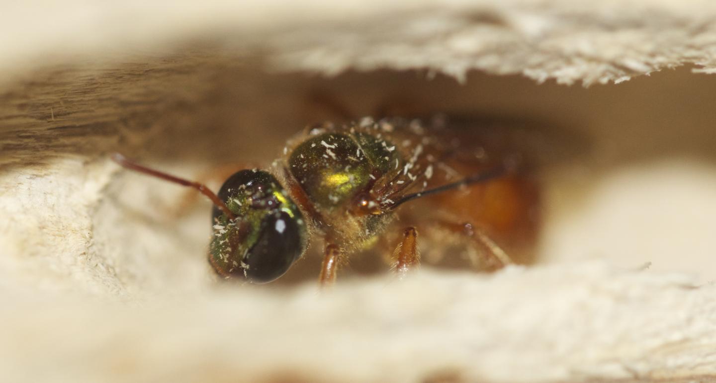 image: Bees (Megalopta genalis) become queens by subjugating their daughters, who go out to forage for food, while the queen stays at home.