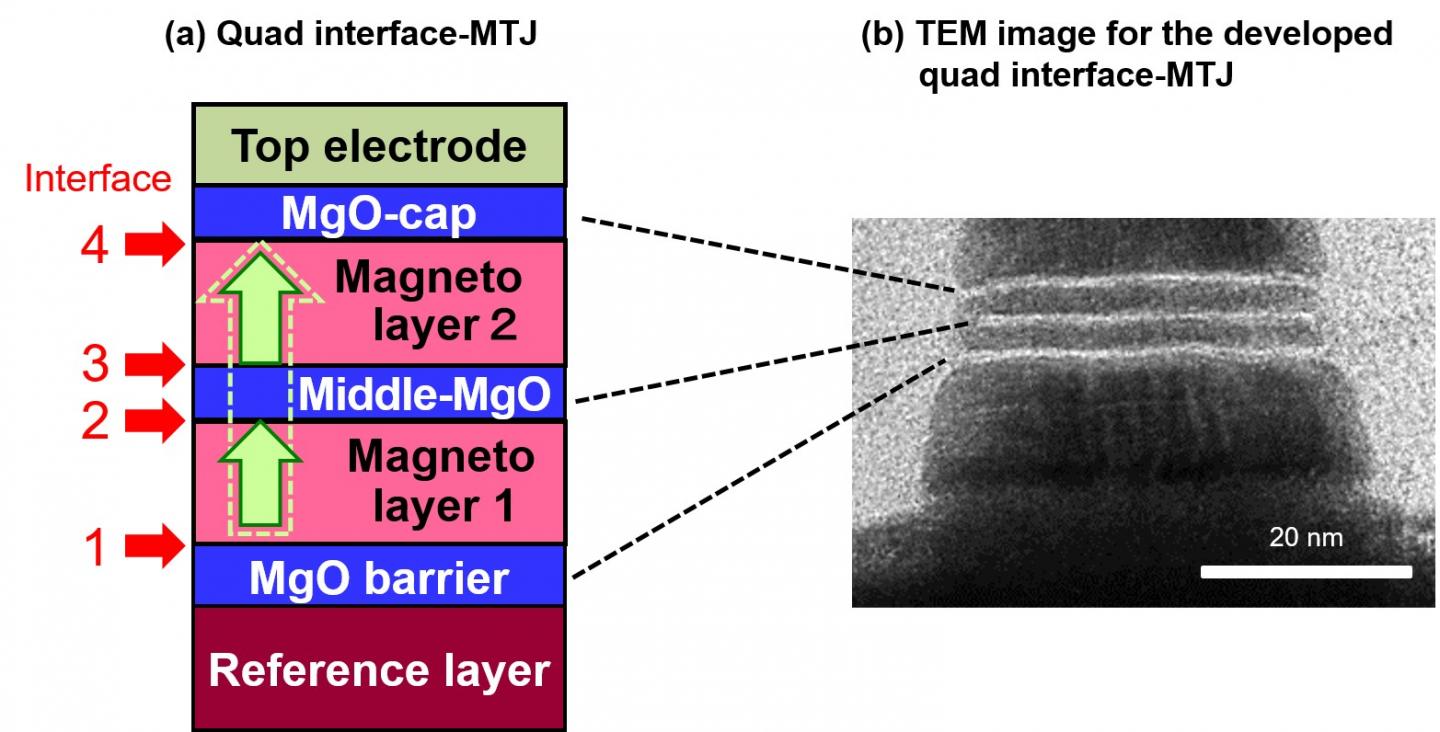 The research team states that the advanced Quad-MTJ overcomes the serious issue of conventional Double-MTJ in several ways: the dilemma between data retention and many kinds of operation performance such as write speed, write power, endurance and so on.