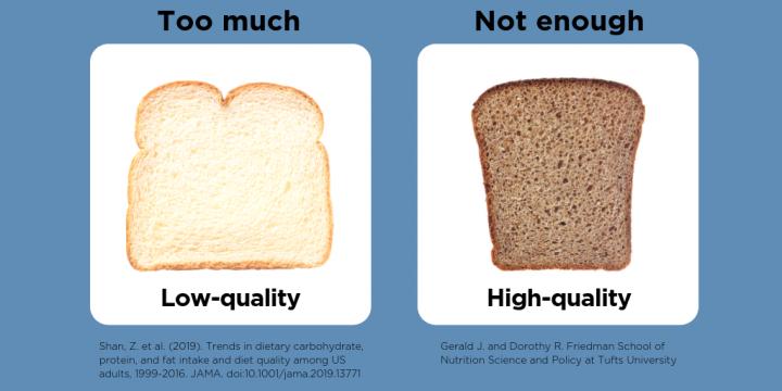 BOSTON (Sept. 24, 2019, 11:00 a.m. ET)--Despite years of steady advice and guidance on healthy eating, a 'report card' on the American diet shows adults are still consuming too many low-quality carbohydrates and more saturated fat than recommended, according to researchers at the Friedman School of Nutrition Science and Policy at Tufts University and the Harvard T.H. Chan School of Public Health. The study, published today in JAMA, looked at dietary trends over an 18-year period.